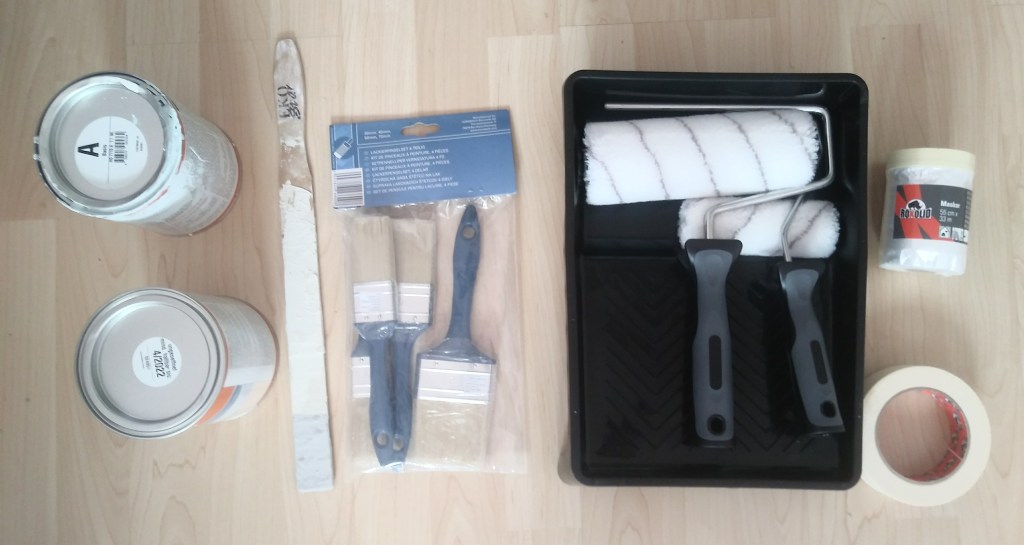 - Wall paint– I am going to use a white colour and a light blue grey colour. I am going to start with one bucket of each to see how much more I need.